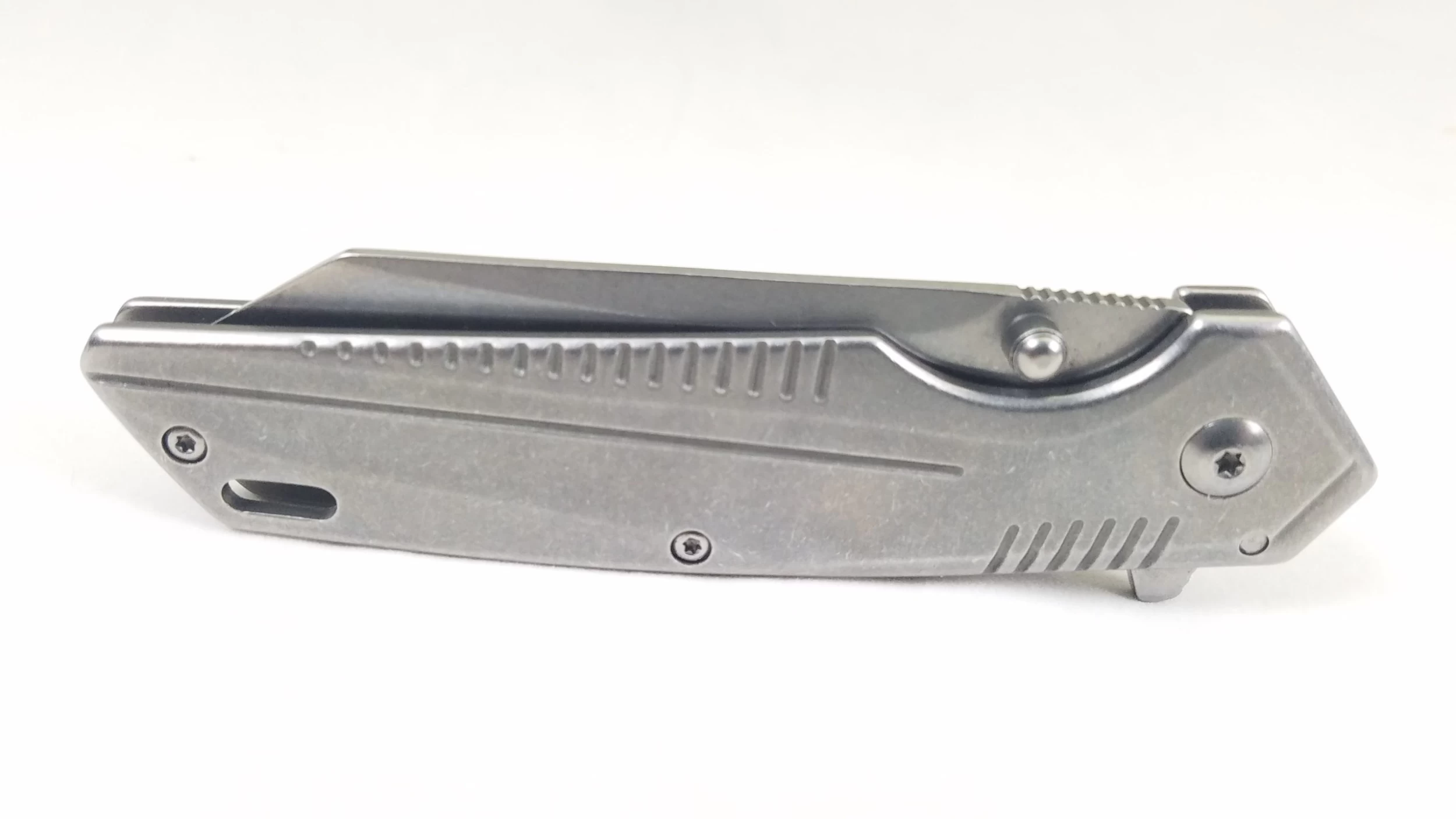Assisted opening. 4.5″ closed. 3.25″ stonewash finish 4Cr14 stainless blade. Stonewash finish stainless handle. Thumb stud. Extended tang. Pocket clip. Lanyard hole. Includes 3.25″ overall multi-tool with bottle opener, cap lifter, pry bar, flathead and Phillips screwdrivers, wire scraper, Hex driver (0.5, 0.44, 0.38). 4.63″ overall stonewash finish stainless eating tool with fork, spoon, bottle opener, and carabiner gate. Clam packed.