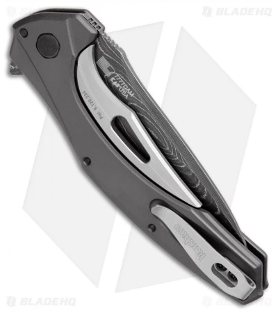 With the Bareknuckle, Kershaw wanted to revive the popular ZT 0777 design with a sturdy U.S. build and a slimmed down profile. It offers a beautiful dmascus steel blade. Matte gray anodized aluminum handle scales provide a sleek, sophisticated look and employ the patented sub-frame lock for secure blade lock up. An oversized pivot and a stainless steel deep-carry pocket clip complete the stellar 7777 DAM design.