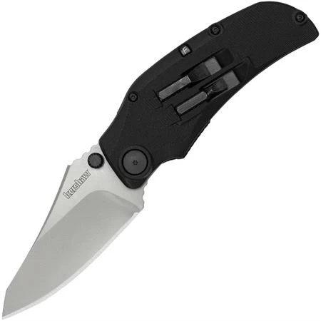 Model – KS1925. Kershaw KK-1925 – Payload. 4.25″ closed. 3.25″ bead blast finish 8Cr13MoV stainless blade. Black GRN handle. Thumb stud. Pocket clip. Features 5-bit screwdriver set in handle: #1 slotted, #1 Phillips, #2 slotted, #2 Phillips, T-6. Out the back spring loaded bit driver. Boxed. Made in China.