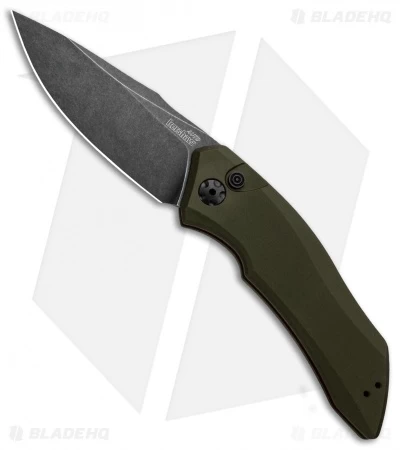 Kershaw Launch 1 Automatic Knife Olive Green Aluminum (3.4″ BlackWash) 7100OLBW